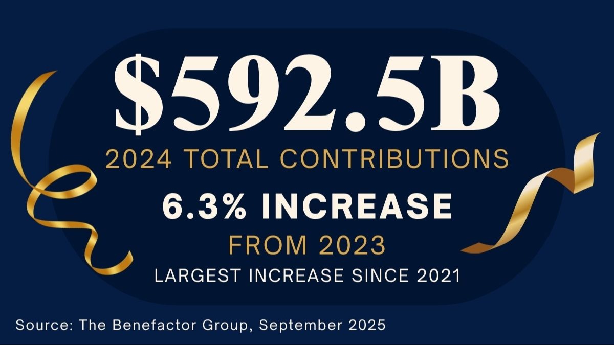 Regardless of the motivation, Americans are generous. For 2024, total charitable contributions were over $590 billion. That’s a 6.3 percent increase from the prior year and the largest increase since the pandemic year of 2021.²
